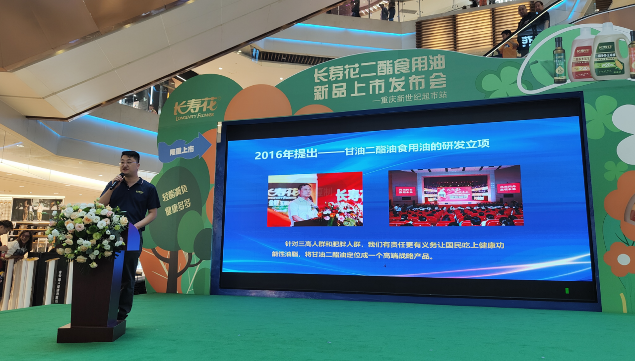 中秋國慶雙節前夕,長壽花全國各大區在重點城市陸續啟動了“甘油二酯油”上市活動,期間,重慶大區攜手重慶百貨大樓舉辦新品上市發布會。現場長壽花甘油二酯油系列產品悉數亮相,通過健康科普、互動問答等環節,以形式多樣的活動為消費者帶來健康享受,感謝消費者的厚愛和支持。